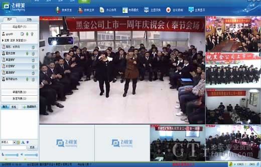 首先,飛視美為總部及5個(gè)辦事處分別安裝了飛視美視頻會(huì)議軟件,將慶典場地劃分為1個(gè)主會(huì)場和5個(gè)分會(huì)場,總部與分支機(jī)構(gòu)的員工都在當(dāng)?shù)貐⒓討c典,通過飛視美進(jìn)行在線演講與總結(jié)、相互問候、相互祝福、表演節(jié)目、進(jìn)行互動(dòng)游戲等,這是一種“高科技互動(dòng)”。其次,為了達(dá)到更好的視頻溝通效果,飛視美為黑金實(shí)業(yè)量身定制了一套硬件設(shè)備方案。根據(jù)各會(huì)場的面積、參與人數(shù)等情況,提供了一整套硬件參考:包括攝像設(shè)備、音響設(shè)備、功效設(shè)備等,并派出技術(shù)團(tuán)隊(duì)專門赴重慶為客戶進(jìn)行設(shè)備搭建和調(diào)試,保障了此次慶典的最佳效果。