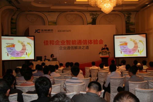 CTI論壇(ctiforum)4月25日消息(記者 潘婷婷): 廣東佳和通信技術(shù)有限公司主辦的首場企業(yè)智能通信體驗(yàn)會(huì),于2011年4月13日在廣州富力麗思卡爾頓酒店隆重召開,并取得圓滿成功。此次體驗(yàn)會(huì)來自佳和通信的負(fù)責(zé)人和業(yè)內(nèi)專家就佳和企業(yè)智能通信平臺的應(yīng)用以及協(xié)同辦公的發(fā)展趨勢發(fā)表了主題演講,為所有到場的100多位來賓做了詳實(shí)的介紹。同時(shí)展示了佳和“!毕盗械7個(gè)應(yīng)用解決方案,并對拳頭產(chǎn)品——智能IP話機(jī)T600、移動(dòng)分機(jī)M600、個(gè)人助理軟件IPA PRO等進(jìn)行了現(xiàn)場演示和互動(dòng),其目的在于使現(xiàn)場嘉賓充分感受企業(yè)智能通信的價(jià)值和魅力,同時(shí)親身體驗(yàn)到如何在在加速辦公自動(dòng)化的同時(shí)提高企業(yè)效率、節(jié)約成本。