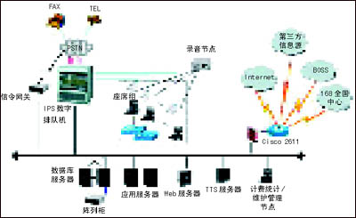 本項(xiàng)目采用新太科技交互式電話會(huì)議系統(tǒng)2.0版,系統(tǒng)各組成部分見圖1。前端接入設(shè)備采用SUNTEK-IPS數(shù)字排隊(duì)機(jī),負(fù)責(zé)多方電話會(huì)議用戶和其他業(yè)務(wù)用戶接入的交換排隊(duì)、自動(dòng)語(yǔ)音資源提供、座席服務(wù)資源提供、錄音、計(jì)費(fèi)等等。SUNTEK-IPS數(shù)字排隊(duì)機(jī)是新太科技最新一代軟交換平臺(tái),是整個(gè)系統(tǒng)平臺(tái)的核心。它綜合了新太科技?xì)v代平臺(tái)的優(yōu)勢(shì),采用世界上最先進(jìn)的軟交換(包交換)技術(shù)和CompactPCI技術(shù),支持主控CPU卡冗余和熱拔插,擁有更大規(guī)模的交換系統(tǒng)總線(CompactPCI的CTBus總線共有4096個(gè)時(shí)隙,理論上,單個(gè)機(jī)框可以支持4k×4k的交換)。SUNTEK-IPS數(shù)字排隊(duì)機(jī)基于自主開發(fā),擁有自主產(chǎn)權(quán),保證了極高的性價(jià)比,已經(jīng)通過(guò)了信息產(chǎn)業(yè)部入網(wǎng)認(rèn)證。SUNTEK-IPS數(shù)字排隊(duì)機(jī)現(xiàn)已在十多個(gè)省成功開展全省業(yè)務(wù)的事實(shí),證明了它具備技術(shù)先進(jìn)、可靠性強(qiáng)等特點(diǎn)。