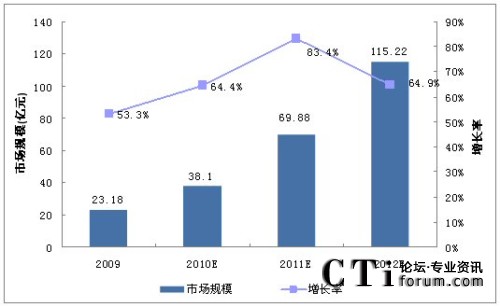 圖:2009-2012中國(guó)移動(dòng)位置服務(wù)市場(chǎng)規(guī)模預(yù)測(cè)(億元)
