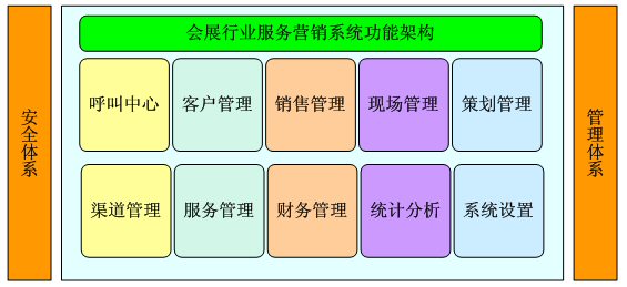 會(huì)展行業(yè)服務(wù)營銷系統(tǒng)為會(huì)展服務(wù)、會(huì)展組辦企業(yè)的信息管理的需要而開發(fā),結(jié)合呼叫中心及服務(wù)營銷系統(tǒng),全面涉及和管理會(huì)展服務(wù)企業(yè)的日常業(yè)務(wù),可以有效的實(shí)現(xiàn)會(huì)展集團(tuán)多辦事處共同應(yīng)用,有效管理不同的展會(huì),分類管理展商觀眾等方面的數(shù)據(jù),全面管理客戶關(guān)系,防止客戶數(shù)據(jù)因業(yè)務(wù)人員流動(dòng)而流失,并可以直觀地進(jìn)行展會(huì)過程管理,應(yīng)用精確的統(tǒng)計(jì)數(shù)據(jù)輔助公司決策。