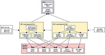 當(dāng)前網(wǎng)絡(luò)中的SS7信令的下3層采用MTP,而B(niǎo)ICC和GCP定義了多種傳輸技術(shù)。圖3是BICC協(xié)議所支持的各種傳輸技術(shù)。