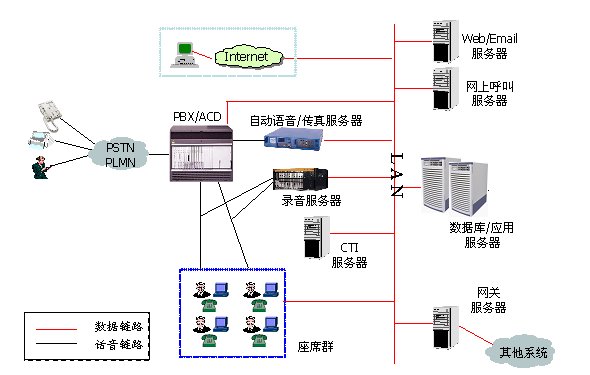 | PBX/ACD | 目前主流的排隊機(jī),如ALCATEL、AVAYA、華為等以及一體化機(jī)和語音板卡等多種底層通信平臺; |