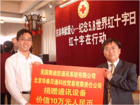 4月,SARS在北京肆無忌彈的橫行,其它國家和地區(qū)也都不同程度地受到SARS的侵害,給人民的生活和工作帶來了極大的影響,人們的身體健康和生命安全受到了威脅。中國紅十字會廣大工作人員對此次疫情迅速響應(yīng),為了支持中國中國紅十字會總開展SARS疫情的救助和捐贈工作,幫助其通過現(xiàn)代化的通訊手段快速準(zhǔn)確的進(jìn)行話務(wù)處理,以便更好地保護(hù)人民的生命和健康,4月30日,奧迪堅(jiān)通訊系統(tǒng)(上海)有限公司聯(lián)合北京華泰貝通科技貿(mào)易有限責(zé)任公司向中國紅十字會總會捐贈了價值約10萬余人民幣的呼叫中心系統(tǒng),軟件以及相關(guān)服務(wù),以實(shí)際行動幫助中國紅十字會總會抗擊SARS。