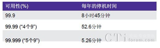 下表顯示了24x7x365全天候系統(tǒng)的可用性。聯(lián)絡(luò)中心的可用性以“正常運(yùn)行時間”或者解決方案用于適當(dāng)處理客戶互動的時段來表示。