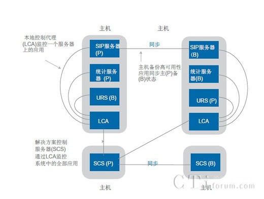 除了提供多個解決方案組件級的高可用性之外,高可用性功能也被融入到了管理框架中。圖4作為假設(shè)系統(tǒng)配置顯示了Genesys系統(tǒng)中高可用性管理的幾個重要方面。通過此類架構(gòu),解決方案控制服務(wù)器(SCS)管理著系統(tǒng)中所有Genesys組件的服務(wù)狀態(tài),包括啟動和停止組件以及管理它們的高可用性主/備狀態(tài)等。SCS與本地控制代理(LCA)的多個實例共同運(yùn)行。每個物理主機(jī)上面都安裝有LCA的一個實例,用于在SCS與主機(jī)上面安裝的單個組件之間提供接口。