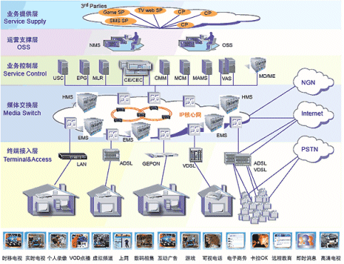 - 開展的節(jié)目:時移電視、直播電視、點播、寬帶、游戲、IP電話等;