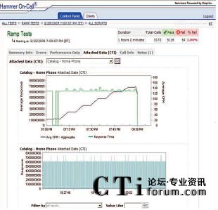 Hammer On-Call IVR測試使用各種各樣的主叫場景模擬真實世界用戶交互。通過改變呼叫量和呼叫場景的混合,Empirix測試專家可以生成指向IVR的模擬真實世界的呼叫流量。此外,在測試中,不同的呼叫測試點上可以使用不同的呼叫率。在測試過程中經(jīng)常會用到三種基本呼叫模型及其變體;緶y試是使用一個恒定的低呼叫率檢驗被測環(huán)境是否已準(zhǔn)備好接受呼叫;增量測試是使用一個固定增量穩(wěn)步增加呼叫量一直到達(dá)峰值呼叫量,然后,增加呼叫量直至超過期望值,檢驗系統(tǒng)在峰值時段內(nèi)是否有額外容量;最后,‘浸透’測試是在指定的時段內(nèi)使用一個恒定的高呼叫率檢驗系統(tǒng)穩(wěn)定性。
