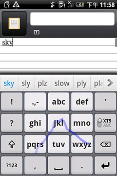 圖:Nuance T9 Trace非連續(xù)重復(fù)字母輸入截圖