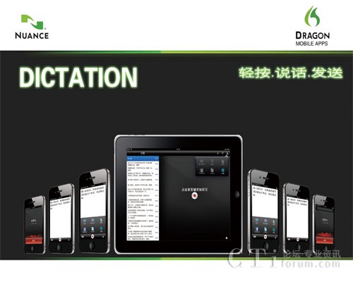 2)聲龍聽寫(Dragon Dictation)適用于iPad™、iPhone™和第2代及第3代iPod touch™(需要外接麥克風)。
