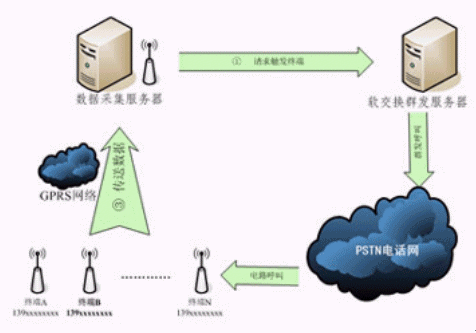1X數(shù)據(jù)網(wǎng)絡(luò)的遠(yuǎn)端模塊,用來傳輸設(shè)備的運(yùn)行參數(shù),這種設(shè)備數(shù)量多至上萬個(gè)。由于GPRS或CDMA1X實(shí)時(shí)在線傳輸費(fèi)用過于昂貴,因此設(shè)備數(shù)據(jù)采集需要每天定時(shí)有喚醒激活機(jī)制。采用軟交換的群發(fā)呼叫功能,可以定時(shí)大容量地呼叫GPRS或CDMA1X所在位置各手機(jī)號(hào)碼,以產(chǎn)生的鈴流來觸發(fā)遠(yuǎn)程設(shè)備啟動(dòng)GPRS或CDMA1X并傳輸數(shù)據(jù),確保遠(yuǎn)程設(shè)備的正常運(yùn)作。