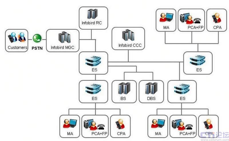 訊鳥于2007年初開始建設(shè)“啟通寶”呼叫中心平臺。該平臺的主體架構(gòu)由控制中心和媒體網(wǎng)關(guān)組成,其中在北京建設(shè)的控制中心類似于系統(tǒng)的“主大腦”,在上海、廣州等其他核心城市建設(shè)第二級的控制中心,類似于系統(tǒng)的“從大腦”?刂浦行牡墓δ苁枪芾砗涂刂,與企業(yè)客戶相連接。媒體網(wǎng)關(guān)類似于系統(tǒng)的“手腳”,其功能是采取行動,進行PSTN和IP網(wǎng)語音的轉(zhuǎn)換等處理。另外,各控制中心負(fù)責(zé)所屬區(qū)域的業(yè)務(wù),同時互為備份。比如,北京的控制中心平時負(fù)責(zé)華北的業(yè)務(wù),上海負(fù)責(zé)華東的業(yè)務(wù),深圳負(fù)責(zé)華南的業(yè)務(wù),一旦某一分中心發(fā)生故障或呼叫量超過額定處理能力時,異地分中心便能接管或分擔(dān)該分中心的業(yè)務(wù)。