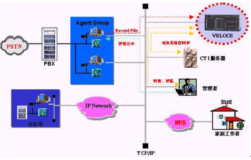 現(xiàn)在國(guó)內(nèi)市場(chǎng)上的絕大部分錄音設(shè)備是基于語音板卡的,而VELOCE 是通過小巧的USB錄音模塊連接到話務(wù)員PC上,利用數(shù)字語音壓縮技術(shù)和加密技術(shù)把通話內(nèi)容存儲(chǔ)到話務(wù)員PC,