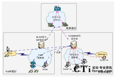 強(qiáng)大的系統(tǒng)融合能力:可以與傳統(tǒng)H.323的電視電話會(huì)議系統(tǒng)互通,以較低的成本把電視電話會(huì)議的音視頻延伸至基層;還可以與傳統(tǒng)的IP電話網(wǎng)融合,使用戶(hù)通過(guò)PSTN電話也能訪問(wèn)協(xié)同服務(wù)器,隨時(shí)隨地實(shí)現(xiàn)音頻參加會(huì)議。
