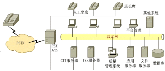 PBX系統(tǒng)即用于呼叫中心的小交換機系統(tǒng),提供呼叫排隊、呼叫路由、話務(wù)員分組管理、呼叫控制等功能,支持市場上主流PBX系統(tǒng)。