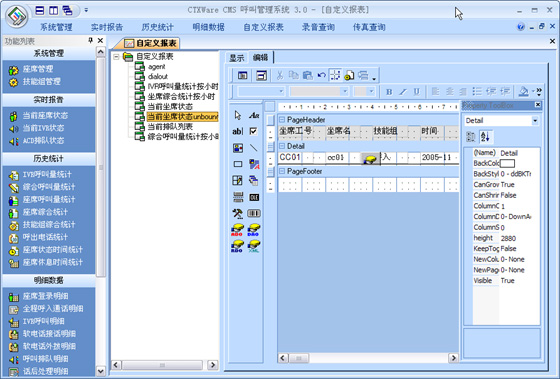 CMS是有效的對(duì)呼叫中心進(jìn)行監(jiān)視和管理的系統(tǒng)。它可以實(shí)時(shí)監(jiān)控整個(gè)呼叫中心的當(dāng)前數(shù)據(jù),按照座席、技能組、中繼線、隊(duì)列、路由進(jìn)行監(jiān)視,查看座席服務(wù)狀態(tài)及接通率各種指標(biāo),通過(guò)各項(xiàng)實(shí)時(shí)記錄和歷史記錄向用戶(hù)提供多種綜合分析報(bào)告和統(tǒng)計(jì)報(bào)告。其所生成的上百?gòu)垐?bào)表,可以協(xié)助企業(yè)有效管理資源,檢查成本,預(yù)測(cè)改善現(xiàn)有運(yùn)作的潛在需求。并提供圖表顯示,生成Excel文檔進(jìn)行再編輯,或者通過(guò)標(biāo)準(zhǔn)的報(bào)表形式進(jìn)行編輯。支持自定義報(bào)表。
