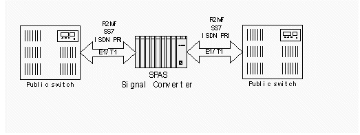 因?yàn)樾帕顦?biāo)準(zhǔn)不同,部分國(guó)外通信設(shè)備無(wú)法與國(guó)內(nèi)通訊網(wǎng)互通互連,SPAS-2000可編程交換機(jī)接口豐富,支持信令標(biāo)準(zhǔn)全面,成本低廉,可以為中國(guó)一號(hào)信令、七號(hào)信令、ISDN PRI(E1/T1)、環(huán)路信令、接入網(wǎng)V5信令等標(biāo)準(zhǔn)之間的轉(zhuǎn)換提供靈活完整的解決方案,同時(shí)當(dāng)輸入和輸出的中繼接口不同時(shí),其語(yǔ)音編碼可能不同,可利用多功能信號(hào)音板實(shí)現(xiàn)語(yǔ)音編碼的轉(zhuǎn)換(例如可以實(shí)現(xiàn)A LAW和U LAW之間的語(yǔ)音互轉(zhuǎn))。連接圖見圖1: