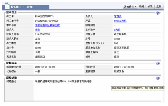 醫(yī)療設(shè)備的維修以現(xiàn)場服務(wù)為主,在接到客戶服務(wù)請求到派工的流程,依靠紙張遠遠達不到高效的要求,維修情況的記錄已僅僅是事后的文字記錄,通常需要層層上報,更不具備匯總和統(tǒng)計分析的功能,作為領(lǐng)導(dǎo)不能適時監(jiān)控和管理在外的維修服務(wù)工程師。