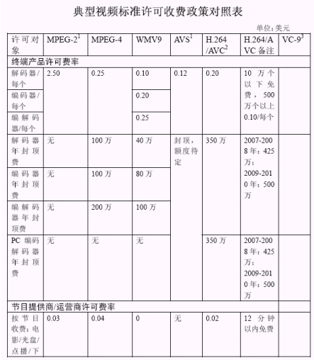 3GPP移動視頻編解碼專利許可狀況