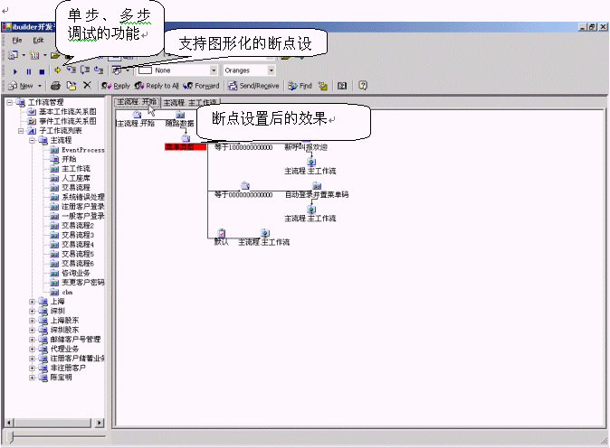 ·輸入輸出變量的圖形化輸出。通過(guò)鼠標(biāo)在相應(yīng)節(jié)點(diǎn)上暫停,屏幕上就可以看到該節(jié)點(diǎn)相應(yīng)的輸入輸出變量的值,非常方便業(yè)務(wù)開(kāi)發(fā)者使用,也是業(yè)務(wù)開(kāi)發(fā)者非常需要的功能。這是一個(gè)平臺(tái)級(jí)的功能,任何敢稱(chēng)為開(kāi)發(fā)平臺(tái)級(jí)別的產(chǎn)品,應(yīng)該具有該功能。