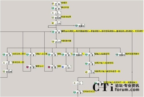 EasyCTI作為一個綜合的自動語音應(yīng)答平臺,用戶并不需要了解底層的實(shí)現(xiàn)原理、語音卡的硬件、軟件編寫等知識,而將精力完全放在具體的業(yè)務(wù)流程開發(fā)上即可。下圖為一個IVR語音流程示例: