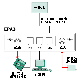 EPA3 是緊湊型適配器,允許 IP 電話(huà)或其他附件通過(guò)現(xiàn)有的局域網(wǎng)布線(xiàn)接收數(shù)據(jù)并為其供電,而無(wú)需修改現(xiàn)有的以太網(wǎng)基礎(chǔ)結(jié)構(gòu)。EPA3 集成了一個(gè) 3 端口交換機(jī),以便可以連接一個(gè)帶電源的設(shè)備以及另外一個(gè)設(shè)備。