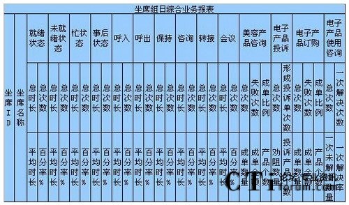 c)如果想對這個組的坐席進行整體的坐席狀態(tài)進行考核,以便確定工作負荷、績效考核,形成每天、每月、每季度、每年、按組、按技能,平均、總計、總合、最大、最小數(shù)據(jù)比較的表格、圖表,對不起要么你放棄這個想法,要么你重新開發(fā)軟件進行計算。