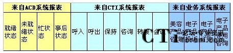 b)其它時間,報表在CTI中,各種統(tǒng)計指標都有,每天、每月、每季度、每年、按組、按技能,平均、總計、總合、最大、最小數(shù)據(jù)比較的表格、圖表,一應俱全;