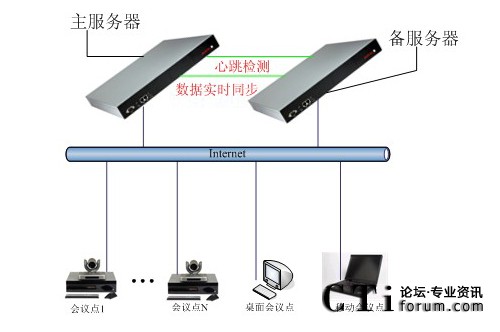 一般情況,服務(wù)器出現(xiàn)故障,如技術(shù)人員在現(xiàn)場(chǎng)的情況下,恢復(fù)服務(wù)器正常至少需要10分鐘、幾小時(shí)甚至更長(zhǎng)時(shí)間。從實(shí)際經(jīng)驗(yàn)上看,除非是簡(jiǎn)單地重啟服務(wù)器(可能隱患仍然存在),否則往往需要幾個(gè)小時(shí)以上。而如果技術(shù)人員不在現(xiàn)場(chǎng),則恢復(fù)服務(wù)的時(shí)間就更長(zhǎng)了。因此對(duì)于網(wǎng)絡(luò)視頻會(huì)議實(shí)時(shí)性來(lái)說(shuō),用戶(hù)是很難容忍這樣長(zhǎng)時(shí)間的服務(wù)中斷。為了有效的解決這個(gè)問(wèn)題,華平率先推出AVCON TNC雙機(jī)熱備系統(tǒng)(Two-Node Cluster),避免長(zhǎng)時(shí)間的服務(wù)中斷,保證會(huì)議系統(tǒng)長(zhǎng)期、可靠的運(yùn)行,保障用戶(hù)重要會(huì)議的順利完整召開(kāi)。