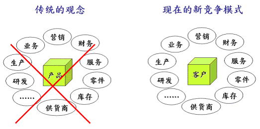 在CRM系統(tǒng)架構中,如何持續(xù)和客戶保持好關系、進而提高客滿意度是最主要目標之一,也是客戶關系管理架構的核心價值所在,F(xiàn)在企業(yè)的競爭模式已經從以往以產品為中心的思考模式,轉變到以客戶為中心的思考模式。(如圖一)