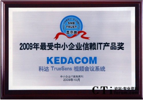 CTI論壇(ctiforum)11月23日消息(記者 潘婷):近日,在剛剛結(jié)束的“2009年最受中小企業(yè)信賴IT產(chǎn)品”評選活動中,科達(dá)TrueSens(致勝)視頻會議系統(tǒng)憑借卓越的產(chǎn)品性能和良好的服務(wù)品質(zhì)在眾多IT產(chǎn)品中脫穎而出,獲此殊榮。