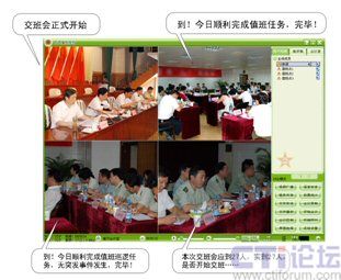 另外,通過該系統(tǒng)還可隨時調(diào)用各值班點(diǎn)的視頻圖象,在發(fā)生突發(fā)事件時各指揮人員能夠通過共同查看相關(guān)視頻資料來共商處理方案,從而有效的做好應(yīng)急處理工作。