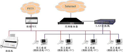 。。某中小企業(yè),無分支機構(gòu),現(xiàn)時有一個由傳統(tǒng)PBX構(gòu)建的電話系統(tǒng)和一個以太局域網(wǎng),兩者相互獨立,局域網(wǎng)通過一臺代理服務器用以太網(wǎng)或ADSL方式接入Internet。企業(yè)的語音通信由電話系統(tǒng)實現(xiàn);員工的日常工作需要使用計算機以及多種局域網(wǎng)和Internet服務(如文件共享、網(wǎng)絡打印、瀏覽網(wǎng)頁、收發(fā)郵件等),這些服務通過局域網(wǎng)提供,目前,在企業(yè)的經(jīng)營管理上還沒有應用相關(guān)的業(yè)務系統(tǒng)(如工作流、ERP、CRM等)。