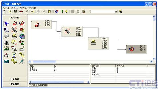 簽入、簽出、置閑、置忙、應(yīng)答、掛機、保持/取回、咨詢/取消咨詢、兩路切換、轉(zhuǎn)接、三方會議、轉(zhuǎn)技能組、外呼等;豐富的業(yè)務(wù)系統(tǒng)功能包括:工單管理、知識庫、客戶管理、質(zhì)檢管理、外撥管理、業(yè)務(wù)統(tǒng)計報表、公告板、郵件管理、系統(tǒng)管理、前臺業(yè)務(wù)(坐席)功能、班長功能、數(shù)據(jù)同步、全程錄音、業(yè)務(wù)處理等,這些功能不作詳細介紹。IVR流程也是采用非常先進的圖形化流程編輯器,通過簡單的拖、拉圖標(biāo)方式即可實現(xiàn)對IVR流程的定制: