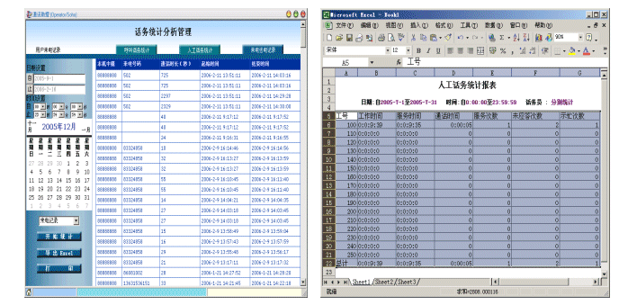 詳細(xì)的話務(wù)記錄和話務(wù)統(tǒng)計分析,可生成各類表、圖表,并可以到出為Excel報表。