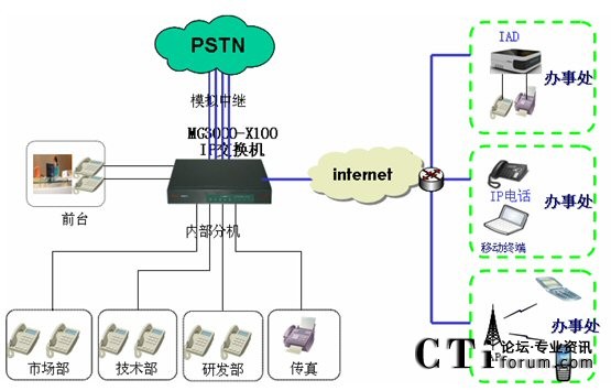 MG3000-X100替代傳統(tǒng)PBX交換機(jī)應(yīng)用方案