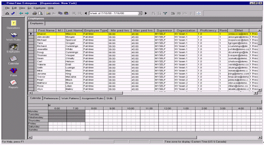 除個人信息以外,還有每個人的技巧應用能力和工作效率也必須要記錄在系統之中,工作日程和預測模型的制定是否合理主要看員工的工作時間和工作效率。圖6展示的就是典型的員工排班界面。這些信息使用了ACD的數據,預測某個技能組在特定的時間需要多少個員工才能應付預測出的電話量。WFMS系統可以通過各種不同的渠道來體現和存儲這些人員信息。