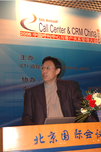 2006年4月3日至5日,2006中國(guó)呼叫中心與客戶關(guān)系管理大會(huì)在北京國(guó)際會(huì)議中心隆重召開,以下是九五太維副總裁李寶民博士專題演講實(shí)錄: