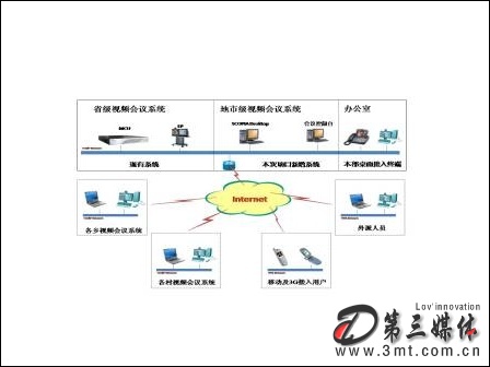 此外,為保證外出領(lǐng)導(dǎo)或員工不會(huì)錯(cuò)過(guò)任何一次重要會(huì)議,該套系統(tǒng)需要支持與普通電話、手機(jī)等語(yǔ)音終端的實(shí)時(shí)接入,而專網(wǎng)外計(jì)算機(jī)桌面終端地接入,可保證外出的干部能夠通過(guò)普通計(jì)算機(jī)參加重要會(huì)議或培訓(xùn)。該平臺(tái)還要能夠通過(guò)升級(jí)支持3G技術(shù)的接入,從而使整套系統(tǒng)能夠順應(yīng)未來(lái)通訊技術(shù)的發(fā)展。