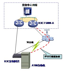 上海電信根據(jù)交通銀行的實(shí)際情況,提出了“線路+設(shè)備+業(yè)務(wù)”一體化的融合解決方案,采用H3C提供的商務(wù)領(lǐng)航定制網(wǎng)關(guān)和IPSec VPN解決方案構(gòu)建。 通過H3C Navigator B1-2+定制網(wǎng)關(guān),將ATM自助機(jī)通過有線主鏈路與總部數(shù)據(jù)中心安全互聯(lián),實(shí)現(xiàn)關(guān)鍵數(shù)據(jù)的安全傳輸,同時(shí)借由定制網(wǎng)關(guān)的3G接口,實(shí)現(xiàn)3G鏈路和有線主鏈路的相互備份。該方案保障了ATM自助機(jī)數(shù)據(jù)的安全傳輸,有效降低了交通銀行的運(yùn)營(yíng)成本,提升了效率。