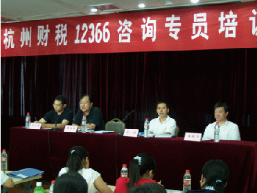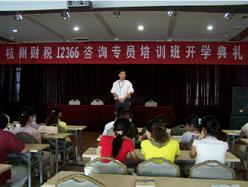 圖為杭州財(cái)稅12366咨詢(xún)專(zhuān)員培訓(xùn)班開(kāi)學(xué)典禮上杭州財(cái)稅局人事處領(lǐng)導(dǎo)講話(huà)