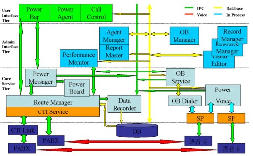 PowerCALL系統(tǒng),包括:呼叫引擎、路由管理、外撥管理、監(jiān)控、報(bào)表、文字消息等模塊