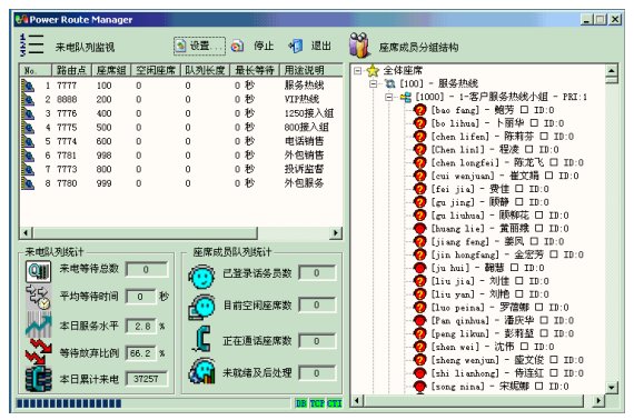 所有線路、座席狀態(tài)、操作時(shí)長(zhǎng)的動(dòng)態(tài)監(jiān)視,動(dòng)態(tài)監(jiān)視呼叫隊(duì)列長(zhǎng)度,并能實(shí)現(xiàn)監(jiān)聽、強(qiáng)插、強(qiáng)拆、強(qiáng)制注銷控制功能。