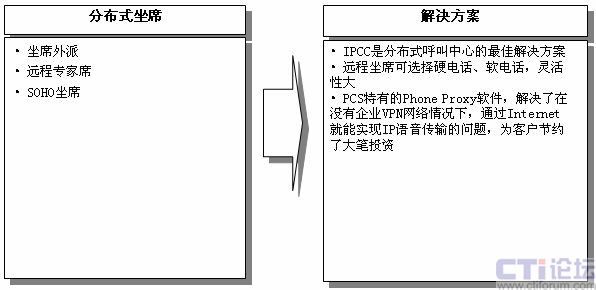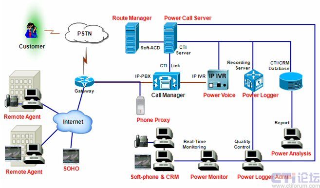 系統(tǒng)采用CISCO CallManager IP-PBX作為語(yǔ)音平臺(tái),PCS提供全套軟件,包括:CTI、排隊(duì)、IP-IVR、錄音和CRM,對(duì)MicroCall外包呼叫中心的各項(xiàng)需求都給出了滿意的解決方案。