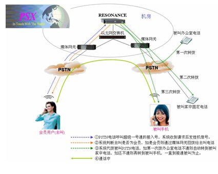 - 一號通:軟交換實現(xiàn)的對來自PSTN的呼叫提供一號通功能,電話可連續(xù)呼轉(zhuǎn)至5個不同的號碼;