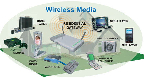 在家中傳送廣播質(zhì)量的視頻將需要住宅網(wǎng)關整合多種有線和無線技術、安全特性和服務質(zhì)量(QoS)能力。住宅網(wǎng)關需要支持最新的無線連網(wǎng)技術,例如目前的802.11g以及暫露頭角的802.11n、802.11d/e和802.11r標準。多種有線家庭連網(wǎng)技術也在考慮之內(nèi),所以住宅網(wǎng)關應能支持以太網(wǎng)、同軸電纜多媒體聯(lián)盟(MOCA)、家用電話線網(wǎng)絡聯(lián)盟(HPNA)、家庭插電聯(lián)盟(HPPA)和通用電力線協(xié)會(UPA)等機構推出的有線家庭聯(lián)網(wǎng)技術。