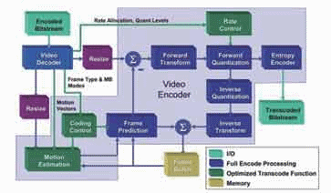 過去幾年來,業(yè)界針對轉(zhuǎn)碼工作提出了幾種不同的方法,可提高處理與存儲器資源的使用效率。大多數(shù)這種方案都建立在這樣一種認識基礎(chǔ)之上,即我們能通過更先進的技術(shù)對初始編碼過程中創(chuàng)建的量子化和頻率域信息進行修改,更好地加以利用,摒棄其中無用的東西,而不必簡單地對原始視頻內(nèi)容進行重構(gòu)。