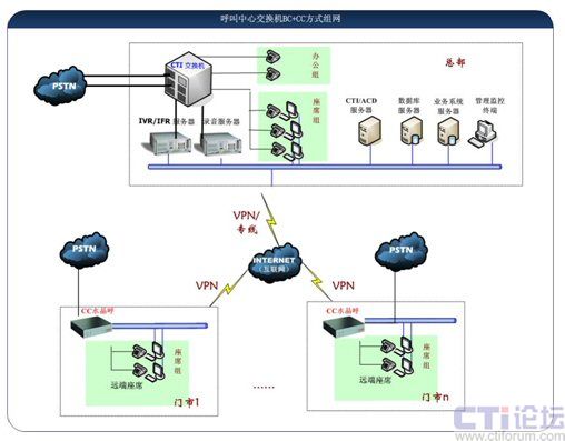 - 總部與各門市相互獨(dú)立:各門市本地接入、本地服務(wù),保留本有號(hào)碼資源和客戶資源,通話不依賴于IP網(wǎng)絡(luò),網(wǎng)絡(luò)故障對(duì)呼叫中心沒(méi)有任何影響