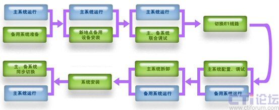 在系統(tǒng)切換前后過程中,在兩個地點都要進行大量的準備和備份工作,還有設備的拆卸和安裝工作,在此過程中,要保證兩個工作地點的局域網(wǎng)絡通暢,確保工作正常進行。