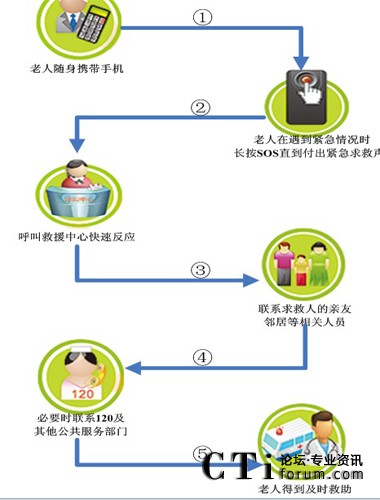 老人使用不記任何電話號(hào),按下紅鍵(盲人按粗糙鍵)就可發(fā)送緊急求救信號(hào);按下綠鍵可以發(fā)送求助信號(hào),求助信息根據(jù)用戶需要在同一時(shí)間發(fā)送到信息服務(wù)中心、社區(qū)網(wǎng)格管理員、老人指定親屬、物業(yè)公司、及有關(guān)部門,可實(shí)現(xiàn)完整信息獲取和快速響應(yīng),啟動(dòng)多方通話進(jìn)行緊急調(diào)度,保障老人的生命財(cái)產(chǎn)安全。